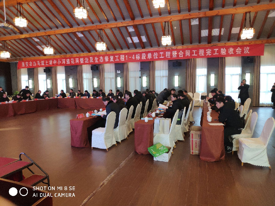 2019年1月16日,淮安市白馬湖投資發(fā)展有限公司在白馬湖漁耕驛站酒店主持召開淮安市白馬湖上游中小河道花河整治及生態(tài)修復工程1-4標段單位工程暨合同工程完工驗收會議。由工程建設、設計、施工、監(jiān)理、跟蹤審計、第三方檢測等單位代表組成單位工程暨合同工程完工驗收工作組,邀請洪澤區(qū)人民政府、蘇淮高新區(qū)管委會,市水利局、環(huán)保局、財政局、審計局、園林局、國土資源局、白馬湖辦,洪澤區(qū)發(fā)改委、水利局,蘇淮高新區(qū)住房和城鄉(xiāng)建設局,洪澤區(qū)高良澗鎮(zhèn)街道辦事處、黃集街道辦事處,蘇淮高新區(qū)淮洪路辦事處、張碼辦事處,淮安市水利工程質量安全監(jiān)督站等單位代表列席會議。我公司承建的施工2標段順利通過完工驗收,其中張玉河節(jié)制閘子單位工程被評為優(yōu)良等級。