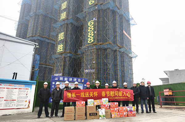 集團(tuán)領(lǐng)導(dǎo)分組慰問了S22天天高速安慶至潛山段、長(zhǎng)風(fēng)港鐵路專用線、皖河新港一期、望湖攬勝等8個(gè)項(xiàng)目部的一線職工。每到一處,集團(tuán)領(lǐng)導(dǎo)都向一線職工送上慰問品,感謝他們一年來的辛勤付出,并與一線職工親切交談,詢問他們的健康狀況及生活現(xiàn)狀,對(duì)他們?cè)诟髯詬徫簧闲燎诠ぷ?、為企業(yè)發(fā)展做出的積極貢獻(xiàn)給予充分肯定,勉勵(lì)大家在新的一年里立足崗位,拼搏進(jìn)取,再創(chuàng)佳績(jī)。領(lǐng)導(dǎo)的問候和祝福讓一線職工備受鼓舞,大家紛紛表示,一定要以更加飽滿的工作熱情投入到工作中,堅(jiān)守崗位,扎實(shí)工作,為集團(tuán)高質(zhì)量發(fā)展作出自己的貢獻(xiàn)。