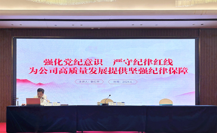 會上,耿仁平以《強(qiáng)化黨紀(jì)意識 嚴(yán)守紀(jì)律紅線 為公司高質(zhì)量發(fā)展提供堅(jiān)強(qiáng)紀(jì)律保障》為題作黨紀(jì)學(xué)習(xí)教育專題黨課報告。