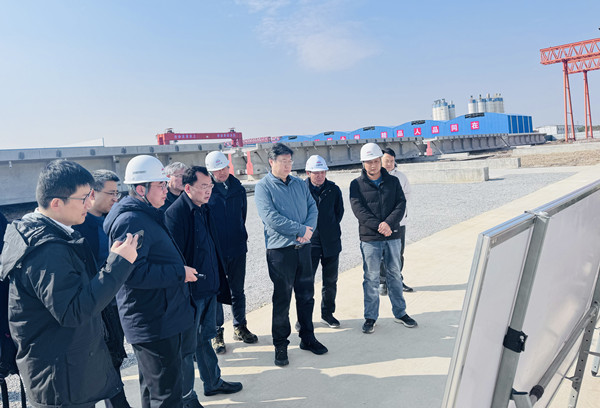 在安慶港長風(fēng)港區(qū)鐵路專用線項目制梁鋪架基地,調(diào)研組一行現(xiàn)場了解項目整體進展,詳細(xì)詢問建設(shè)資金狀況、項目施工進度、燃?xì)夤芫€遷改以及設(shè)計指標(biāo)等情況。