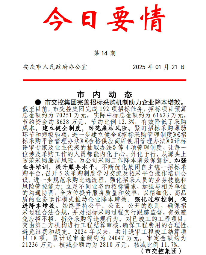 市交控集團(tuán)完善招標(biāo)采購機(jī)制助力企業(yè)降本增效