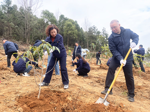 活動(dòng)現(xiàn)場(chǎng),各部室干部職工熱情高漲,干勁十足,大家三兩搭配,配合默契,熟練地?fù)]鍬鏟土、扶苗填坑、培土澆水,各個(gè)環(huán)節(jié)銜接有序,一派熱火朝天的植樹(shù)場(chǎng)景。經(jīng)過(guò)近兩個(gè)小時(shí)的辛勤勞作,近百棵白玉枇杷樹(shù)樹(shù)苗全部栽種完畢,初春的土地呈現(xiàn)出一片勃勃生機(jī)。